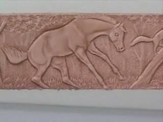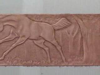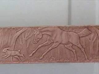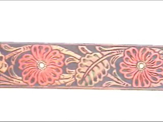 Pattern on belt: Basketweave(s), flowers, geo- metric, "Name", western florals, other designs/scenes. Combination of above. Pattern will be run 3/4 to 7/8ths the length